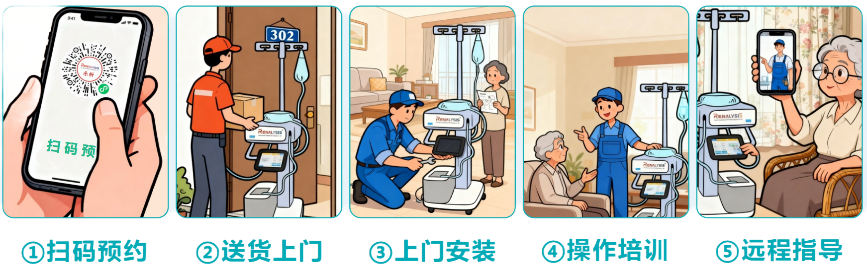腹透机采用智能化、简易化操作界面,核心操作步骤简化至3步以内,降低使用门槛。我们会为每位患者提供一对一上门操作培训,包含基础操作、异常处理、日常维护等内容,同时配备图文版操作手册和视频教程,确保患者及家属能快速掌握。
